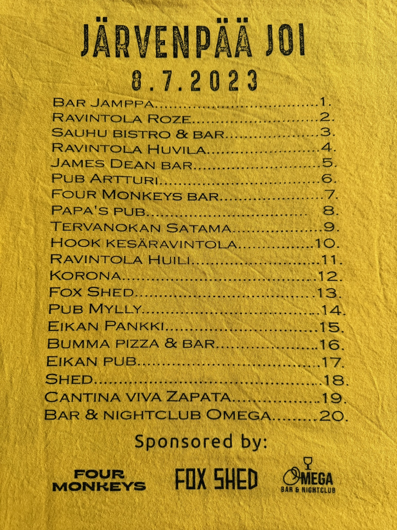 Olkaatte paikalla viimeistään klo 10:00, tapahtumapaitoja jaetaan vain ensimmäisellä kohteella. -